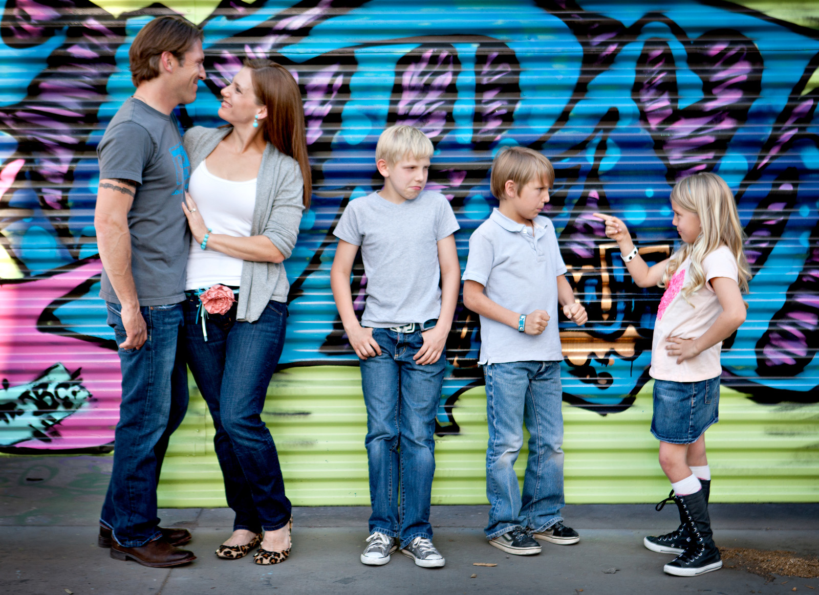 This fun family session was done in late March in the early evening near the Arizona Science Center. The Graffiti wall on Camelback was a lot of fun, but does require an addition $50 payment (paid to the building owner) to use.